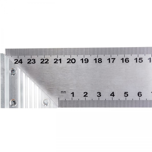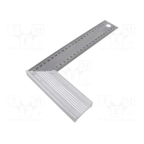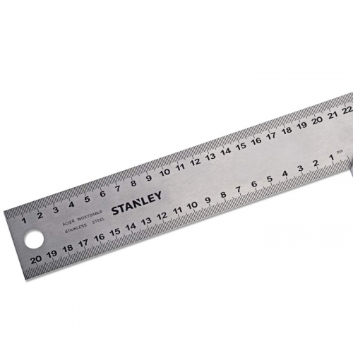 Косинець столярний STANLEY 1-45-685 виконаний кутник з нержавіючої сталі з легкочитаємою витравленою шкалою. Екструдирована алюмінієва підстава поєднана з лінійкою трьома заклепками для забезпечення міцності і високої точності. Підстава зі зрізаним кутом для можливості відкладання кутів 90 градусів і 45 градусів. Шкала в міліметрах вигравірувана по обидва боки кутника.