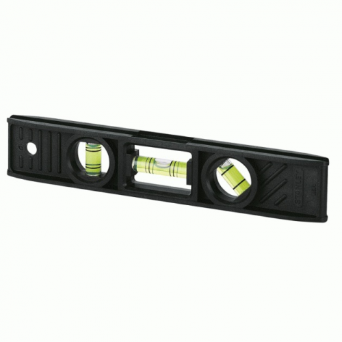 Рівень TORPEDO STANLEY 0-42-294 має високоміцний корпус з АБС-пластика, що виконаний методом інжекційного лиття. 3 капсули рівня: горизонтальна, вертикальна і встановлена під кутом 45. Збільшена цетральна капсула для легкого зчитування показників. Завдяки довжині 200мм рівень зручно сидить у руці під час роботи і дозвляє зробити точні виміри.