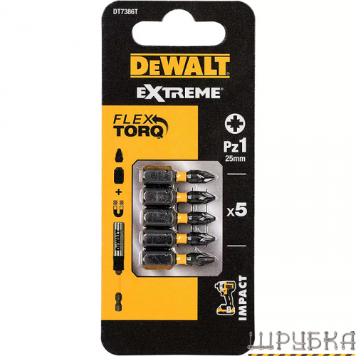 Набір біт DeWALT DT7386T зі шліцем Pozidriv, розмір головки - Pz1. Набір виконаний з високоякісної сталі для твердості і довговічності.