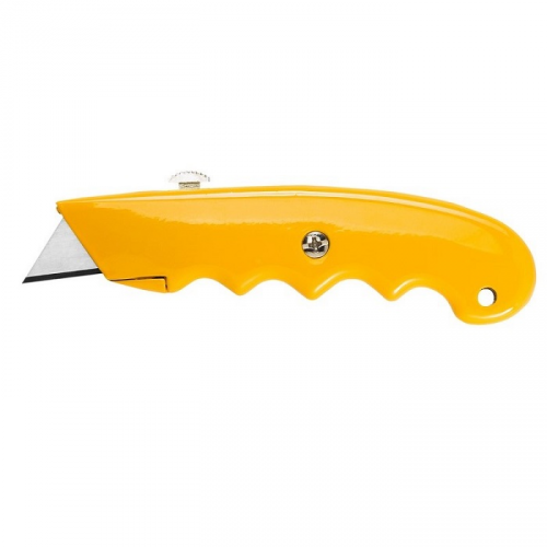 Ніж універсальний Hardy 0500-210000 з трапецієподібним лезом. Використовується для робіт з різними матеріалами. Він застосовується в процесі різання лінолеуму, килимового текстилю, гіпсокартону, пластику і навіть покрівельних покриттів. Такий інструмент стане незамінним в процесі виконання оздоблювальних та ремонтних робіт завдяки своїй універсальності і ергономічній формі, що забезпечує додатковий комфорт під час експлуатації. Металевий ніж характеризується підвищеним ресурсом і забезпечує максимально якісне і оперативне виконання робіт будь-якого рівня складності.