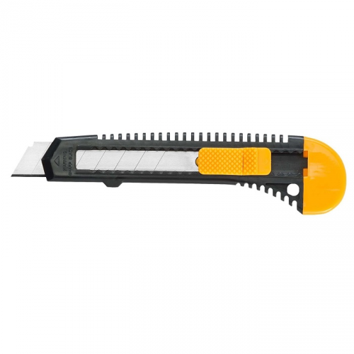Ніж універсальний Hardy 0510-251800 з сегментованим лезом і фіксацією леза. Використовується при виконанні оздоблювальних робіт. Ніж Hardy 0510-251800 може застосовуватися для різання лінолеуму, килимового текстилю, гіпсокартону, пластику і навіть покрівельних покриттів.