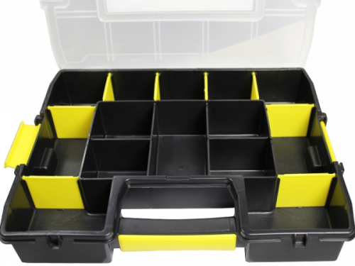 Органайзер професійний Sort Master Junior STANLEY 1-97-483 з переставними перегородками - до 512 можливих конфігурацій. Зручний для зберігання дрібних деталей і інструментів, навіть молотків. Кришка легко та надійно закривається. Структура кришки не дозволяє переміщатися дрібним деталям при транспортуванні. Стикуються для транспортування органайзери в блок до 3-х штук.