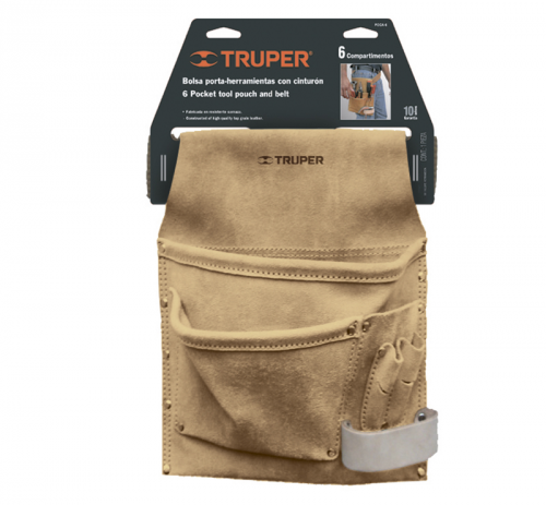 Поясна сумка для інструменту TRUPER POCA-6 для носіння інструменту, виготовлена з міцної шкіри буйвола. Має 6 відсіків і міцний ремінь з 100% бавовни з регульованою пряжкою. Відмінно підійде для електриків, столярів, механіків, будівельників, тощо.