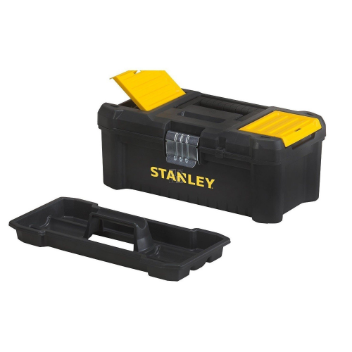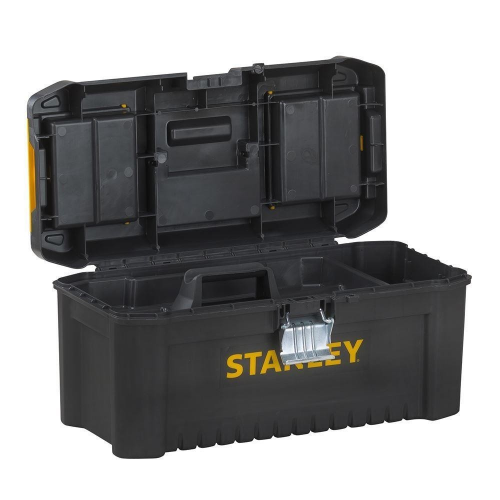 Ящик ESSENTIAL STANLEY STST1-75518 з вбудованими в кришку органайзерами (2 шт.) для зберігання дрібних деталей. Широка металева засувка дозволяє надає додаткову міцність і дозволяє відкривати і закривати ящик однією рукою. Профільоване дно надає ящику додаткової міцності. Розміри ящика STANLEY STST1-75518: 40,6x20,5x19,5 см.