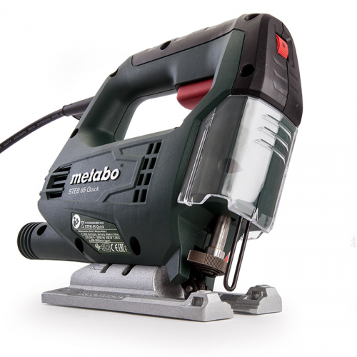 Електричний лобзик METABO STEB 65 Quick розроблений з урахуванням ергономіки. Його прогумована рукоятка забезпечує комфортне захоплення і знижує вібрацію, що робить роботу більш приємною навіть при тривалому використанні. Інструмент також обладнаний адаптером для підключення пилососа, який дозволяє зберігати робочу зону чистою, видаляючи пил і стружку в процесі роботи.