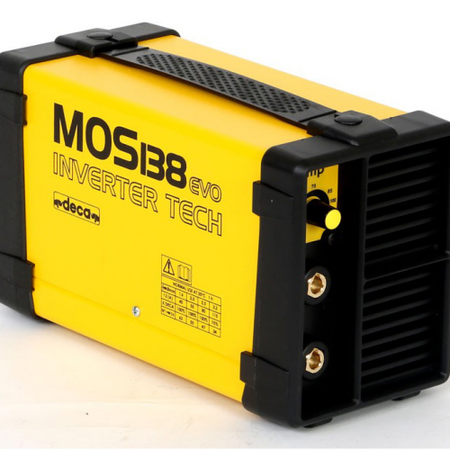 Зварювальний апарат інверторного типу DECA MOS 138E призначений для аргонно-дугового виду зварювання різними електродами. На постійному струмі відбувається зварювання міді, бронзи, нержавійки, нікелю та латуні. При змінному струмі проводиться зварювання алюмінію і магнію. DECA MOS 138E має такі функції: Hot start - функція легкого запалювання дуги, Anti-stick - система виключає залипання електрода, ARC FORCE - виключає гасіння зварювальної дуги при перенесенні крапель розплавленого металу з електрода в місце зварювання. Регулювання струму відбувається від 5 А до 130 А. Режим зварювання TIG відмінно підійде для зварного шва на тонких аркушах металу товщиною від 0,5 мм. Режим зварювання MMA підходить для зварювання електродами прямої і зворотної полярності в залежності від зварюваного матеріалу. Потужність DECA MOS 138E становить 2500 Вт. Джерелом живлення служить мережа 220 В. Зварювальний апарат інверторного типу DECA MOS 138E має вагу 3,5 кілограма.