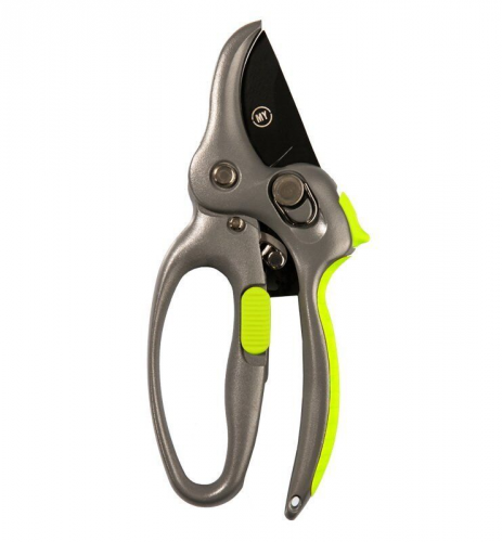 Секатор храповий CRAZY My Garden 221-1-200 з посиленою конструкцією корпусу з високоякісного алюмінію та храповим механізмом, який зменшує необхідне зусилля під час роботи. Призначений для видалення як живих так і сухих гілок.