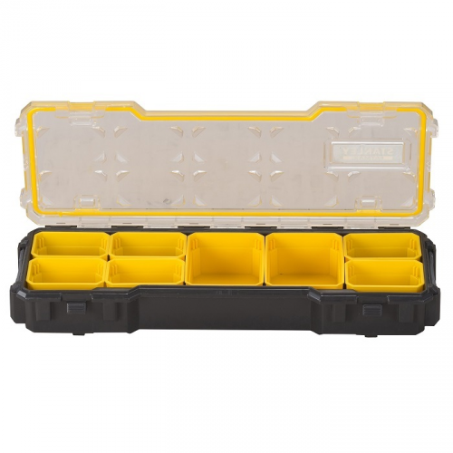 Органайзер FATMAX STANLEY FMST1-75781 з міцною, прозорою кришкою з полікарбонату, що не б'ється. Штабелюється завдяки бічному блокуванню. Органайзер STANLEY FMST1-75781 сумісний з усіма іншими органайзерами FatMax. Захист від пилу і дощу: IP53.