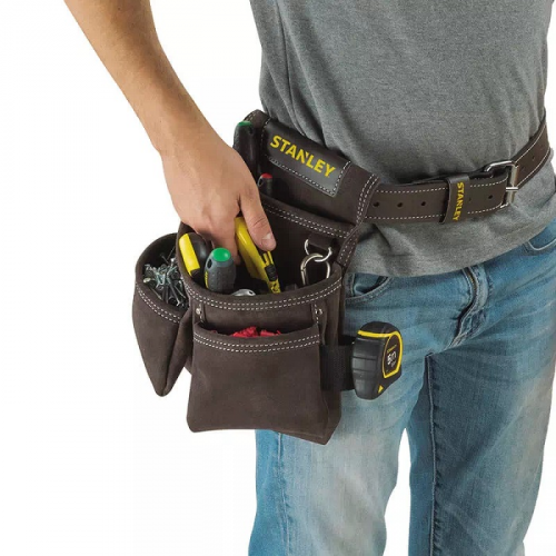 Сумка для інструменту STANLEY STST1-80116 виготовлена з міцної якісної шкіри буйвола. Посилені заклепки з гладкими закругленими закінченнями призначені для запобігання пошкодження одягу. Різні кишені і утримувачі прості та зручні у використанні. Широкий слот для ременя - сумку можна одягнути на ремінь для більшого комфорту та зручності. Тримач молотка дзволяє тримати даний інструмент завжди при собі.