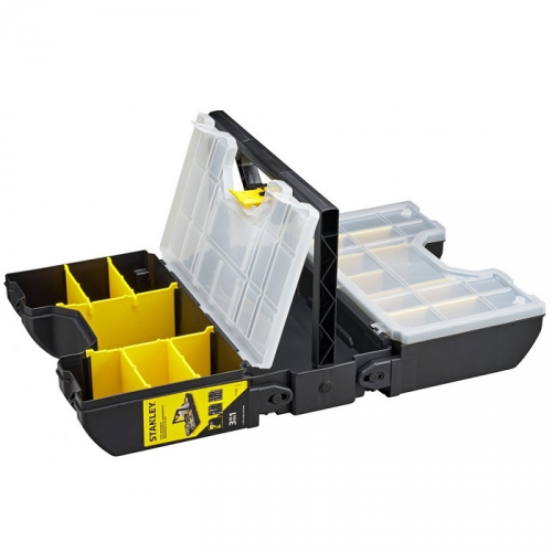 Органайзер 3 в 1 STANLEY STST1-71963/strong> з 3-ма відділеннями для зберігання ручного і електроінструменту, а також аксесуарів. Переставні перегородки призначені для оптимізації зберігання як дрібних деталей, так і більшого інструменту. Вбудований центральний лоток зручний для розміщення великого ручного інструменту. Конструкція органайзера забезпечує одночасний доступ до вмісту всіх трьох відділень. Міцна ручка, що не виступає за габарити органайзера, забезпечує зручність при перенесенні.