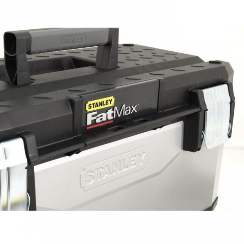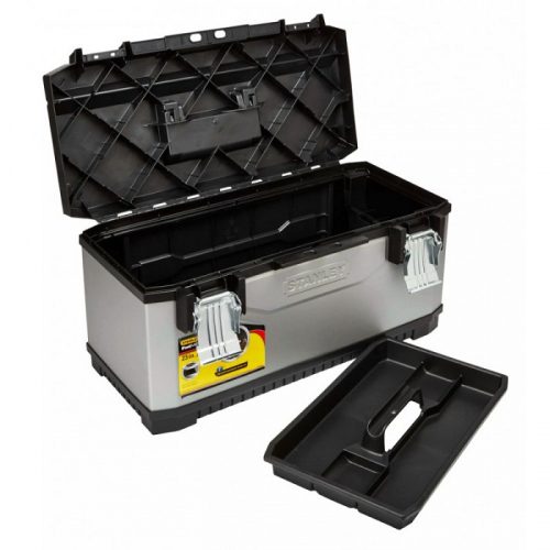Ящик професійний FatMax STANLEY 1-95-615 для інструменту, виготовлений з металу та пластику в сірому кольорі. Високий корпус для збільшеного обсягу зберігання. Інноваційний знімний вертикальний органйзер для більш зручного розміщення інструменту. Великі металеві із захистом від корозії замки з можливістю використання навісного замка (навісний замок в комплект поставки не входить). Ергономічна ручка з двох матеріалів для більшого комфорту. Поєднання переваг пластика з міцністю металу для максимального захисту вмісту. V-подібний паз в кришці ящика для зручності розташування деталі при пилянні. Переносний лоток для транспортування інструменту і дрібних деталей, при цьому в ящику залишається місце під великий інструмент, оскільки довжина лотка менше довжини ящика. Конструкція дозволяє з легкістю переносити велике навантаження. Підходить для роботи з трубами і пиломатеріалами. Розмір ящика: 49,7x29,3x29,5 см.