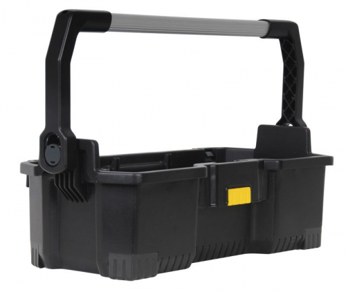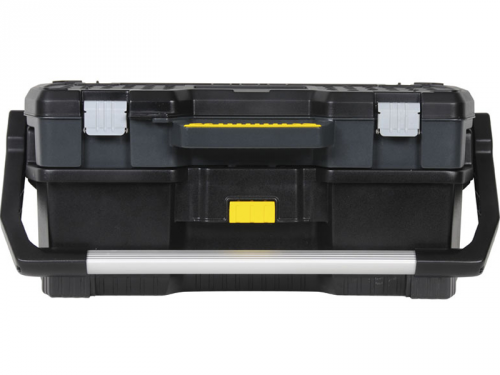 Ящик професійний STANLEY 1-97-506 відкритий, зі знімним кейсом для електроінструменту і дрібних деталей. Кнопка на передній поверхні для простого від’єднання кейса від ящика. Для їх з’єднання необхідно помістити кейс задньою частиною на ящик і зафіксувати з клацанням, натиснувши зверху на передню частину. Довга металева ручка ящика, що фіксується у вертикальному положенні для перенесення, і опускається вниз для зручності зберігання. Міцні нержавіючі металеві замки і металеві петлі у верхнього кейса для більшої надійності. Інтегрована ручка дозволяє використовувати кейс окремо від ящика. Кейс має знімні перегородки і відділення, що закривається для свердел і дрібних деталей. Ящик STANLEY 1-97-506 дозволяє розміщувати електроінструменти та аксесуари. Корисний об’єм складає 59 л, максимальне навантаження 18 кг. Високоміцна конструкція зі структулена для довгого та надійного терміну служби.