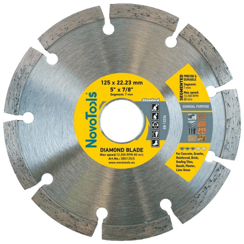 Круг алмазний сигментний NovoTools Standard 230х22,23мм призначений для сухого та вологого різання керамічної плитки, бетону, граніту, цегли, каменю, шиферу, черепиці, мармуру та інших.