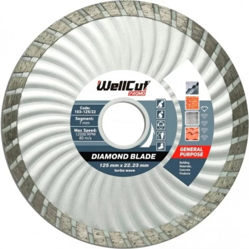 Круг відрізний турбохвиля Wellcut Promo 115х22,23мм призначений для сухого та вологого різання керамічної плитки, бетону, граніту, цегли, каменю, шиферу, черепиці, мармуру та інших.