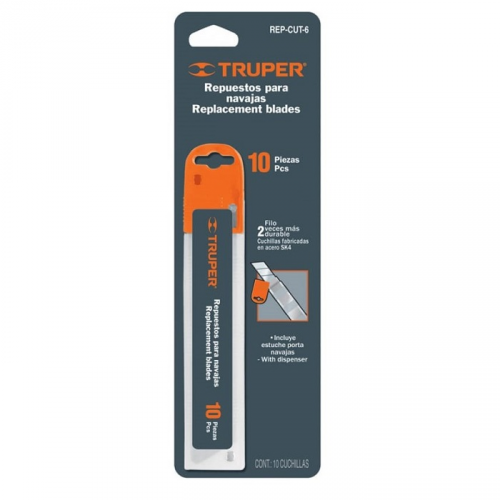 Лезо змінне TRUPER REP-CUT-6 для сегментних ножів, виконане зі сталі SK4, яка в 2 рази міцніше вуглецевої сталі.