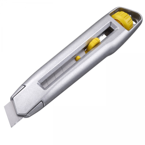 Ніж Interlock STANLEY 0-10-018 має литий металевий корпус, що виконаний з високою точністю та поєднує високу міцність з малою вагою. Запатентована конструкція носової частини корпусу Interlock: запобігає деформації корпусу навіть при дуже великому бічному навантаженні на лезо. Легка заміна леза - немає необхідності у використанні викрутки. Двигун управління становищем леза на бічній поверхні надійно фіксує лезо в обраному положенні.