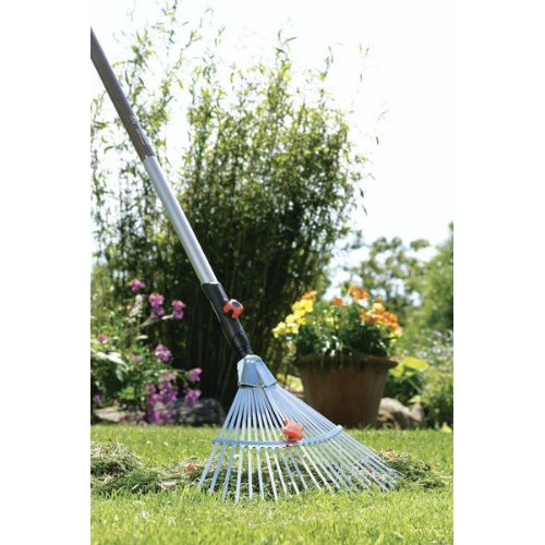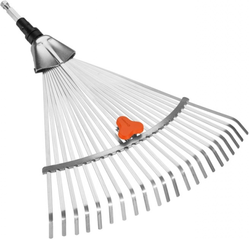 Граблі віялові 30-50см GARDENA 03103-20.000.00 ідеально підходять для очищення і вирівнювання грунту, згрібання листя, тощо. Оцинковані зуби виготовлені з високоякісної пружинної сталі для довгого терміну експлуатації. Використовуються разом з алюмінієвою або дерев'яною ручкою частини комбісистеми Gardena. Можливість регулювання відстані між зубцями дозволяє збирати як великий, так і дрібний матеріал. Просте з'єднання з ручкою за допомогою гвинта забезпечує надійність експлуатації без розгойдування інструменту.