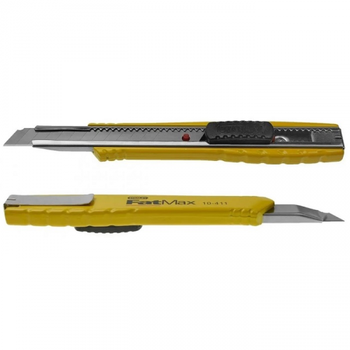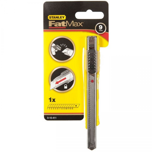 Ніж FatMax 9мм STANLEY 0-10-411 з лезом шириною 9 мм, з сегментами, що відламуються. Литий оцинкований корпус забезпечує високу міцність і тривалий термін служби. Тонкий корпус ножа дозволяє краще контролювати процес різання. Механізм автоблокування леза дозволяє легко регулювати довжину і одночасно міцно фіксувати лезо при роботі. Рефлена поверхня корпусу ножа запобігає прослизанню. Інтегроване пристосування для безпечного і зручного відламування сегментів леза. Зручний кишеньковий зажим для більшого комфорту. Швидка зміна лез дозволяє швидко виконати роботу.