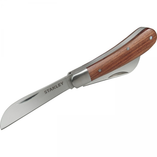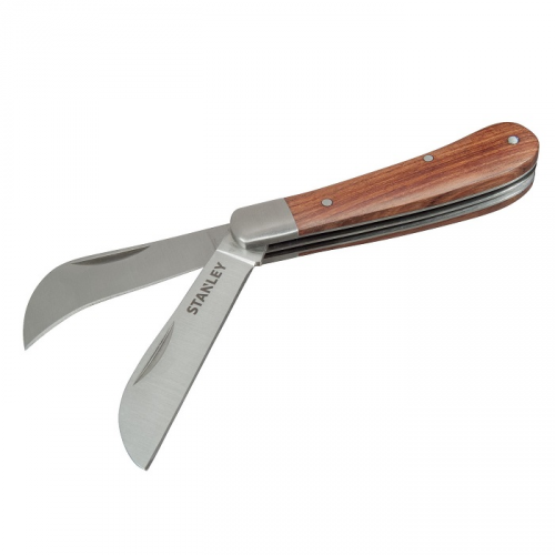 Ніж для електрика STANLEY STHT0-62687 складаний з дерев’яною рукояткою і двома лезами. Ніж STANLEY STHT0-62687 володіє можливістю блокування відкритих лез в двох положеннях - 90 і 180 градусів.