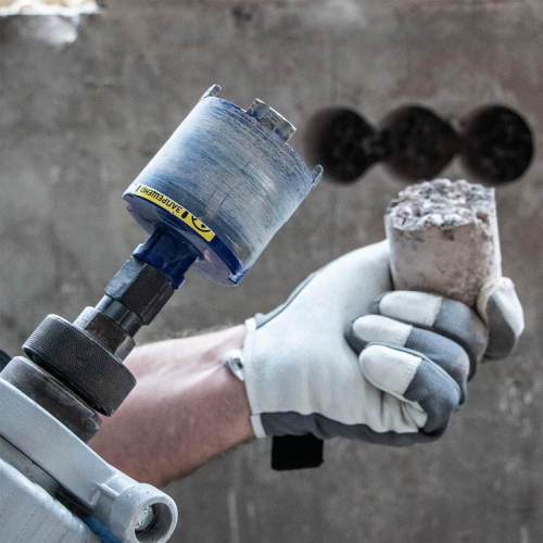 Для збільшення продуктивності свердла і виключення появи пилу при бурінні отворів рекомендується використовувати спеціальний адаптер, який забезпечує подачу води в робочу зону для ефективного виносу шламу.