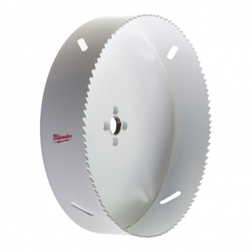 Біметалічна коронка 177мм MILWAUKEE HOLE DOZER (4932399887) підходить для застосування разом з перфораторами або дрилем. Коронка універсальна, підходить для роботи з такими матеріалами: сталь з моментом міцності до 1000 Н/мм2, нержавіюча сталь, кислостійка сталь, чавун, кольорові метали, алюміній, деревина, тощо. Товщина сталі корпусу коронки складає 1,27 мм, що зводить до мінімуму пошкодження матеріалу, ефективна глибина різання складає 41 мм. Змінний крок зуба 4/6" з позитивним кутом 10 градусів дозволяє виконувати швидкий різ у міцних матеріалах. Покращене відведення тепла під час свердління дозволяє залишатися зубам гострими довгий час. Досить глибокі виїмки між зубами збільшують ефективність видалення стружки і запобігають застряганню і перегріву коронки. У зубчастої частини кільцевої пили використовується високоякісна гарячекатана сталь типу Matrix II. Сталь типу Matrix II містить 8% кобальту, що дозволяє зубам зберігати первинну твердість під час розрізання металу навіть при високих температурах. Високошвидкісні сталеві зуби приварені лазером до корпусу з низьколегованого сталевого сплаву. Зуби піддаються загартовуванню при температурі 600°C для міцності і тривалого терміну служби. Коронка має 4 отвори в підставі для легкого кріплення хвостовика.
