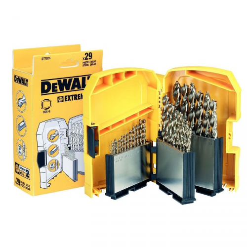 Набір свердел DEWALT DT7926 призначені для використання по легованій та нелегованій сталі з міцністю до 900 Н/мм2. Для свердління тонколистового профільного прокату, де потрібні точні та чисті отвори. Дуже добре підходять для свердління дерева та пластику. Золотисте оксидне покриття запобігає перегріву, збільшуючи термін служби свердла. Швидкий старт не вимагає попереднього кернення. Точне свердління без відведення свердла в бік завдяки центрувальному вістря EXTREME DeWALT® 2 (діаметром від 4,8 мм). Круглі отвори з рівними краями без задирок на вході та виході завдяки 2-м додатковим різцям по краях (d від 4,8 мм). Товщина сердечника поступово збільшується у напрямку до хвостовика для найбільшої стійкості на злам. 3 фрезеровані поверхні хвостовика виключають прослизання в патроні. Лазерне маркування з розміщенням поза затискачем (d від 5 мм) захищає від зносу, забезпечує хорошу читаність тривалий час.