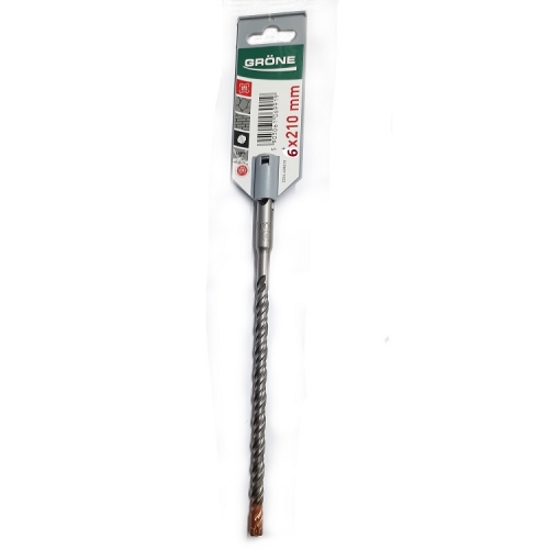 Свердло GRÖNE 2204-606210 презначене для свердління бетону, армованого бетону, натурального каменю. Ідеально підходить для свердління густоармованих бетонних конструкцій. Виготовлено свердло зі сталі 40CR. Матеріалом для виготовлення напайок став карбід вольфраму YG8C. Додаткова спіраль, завдяки якій, бур стійкий на злам, виробляє менше вібрацій і стійкий до ударних навантажень. Швидкий відвід шламу відбувається завдяки двом відвідним і двом підсилюючим спіралям. Чотири ріжучі напайки дають додаткову стійкість до навантажень при контакті з арматурою.