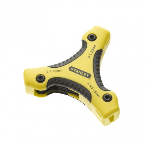 Набір ключів шестигранних STANLEY 0-95-935 з 9 стандартних метричних шестигранних ключів, виготовлених з високоміцної хром-ванадієвої сталі. Футляр-ручка для зберігання з маркуванням дозволяє швидко вибирати потрібний ключ. Високоергономічна тристороння ручка, виконана з бі-матеріалу (високоміцний пластик), що дозволяє передвати великі зусилля.
