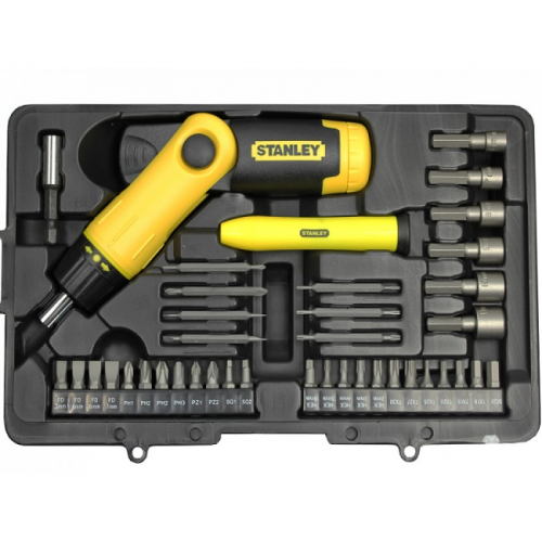 Бітотримач викруткового типу Pistol Grip Ratchet STANLEY 0-63-038 з храповим механізмом і набором з тридцяти семи біт. Викрутка STANLEY 0-63-038 з перемикачем напряму обертання і рукояткою, що ламається під двома кутами: 45 і 90 градусів для комфортного та якісного виконання роботи. Магнітний тримач надійно тримає насадку. Бітотримач ″годинного типу″ призначений для мікробіт. Практичний пластиковий футляр для надійного зберігання.