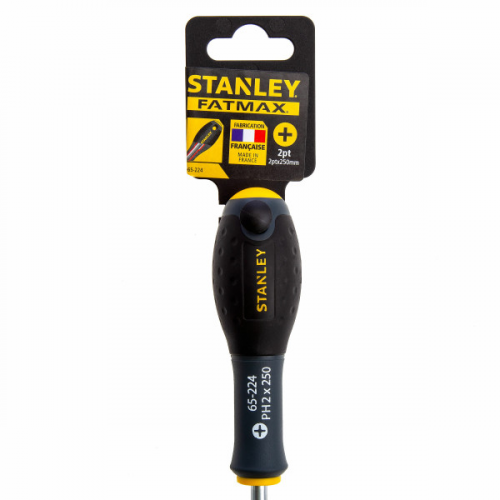 Викрутка FatMax Ph2x250мм STANLEY 0-65-224 під шліц PH (Philips). Стрижень виготовлений з високоякісної хром-ванадієвої сталі, завдяки чому, знижується ризик пошкодження жала викрутки. Дробеструменева обробка допомагає захистити жало від корозії і прикладати більший крутний момент.