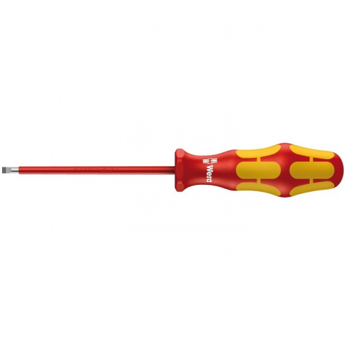 Набір діелектричних викруток Kraftform Plus WERA 05006147001 з поштучною перевіркою за стандартом IEC 60900. Поштучна перевірка у водяній бані під напругою 10000 В для безпечної роботи на обладнанні з максимально допустимою напругою 1000 В. Ручка Kraftform Plus для комфортної роботи без появи на руках мозолів і пухирів. Тверді зони ручки для високої швидкості роботи, в той час як м'які зони ручки забезпечують передачу великих моментів сили. Шестигранний край ручки для захисту від перекочування викрутки на робочому місці. Частина викруток з обробкою Lasertip: накінечник надійно "вгризається" в головку гвинта і запобігає вислизанню викрутки. Набір включає індикатор напруги і підставку для розміщення викруток.