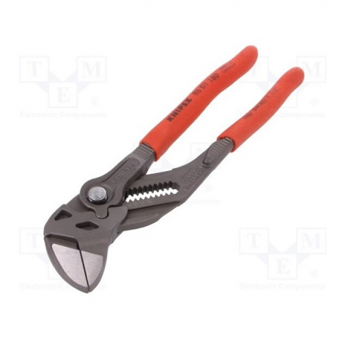Кліщі переставні KNIPEX 8601180 замінюють повний набір гайкових ключів, як метричних, так і дюймових. Гладкі губки для бережного монтажу арматури з високоякісною обробкою поверхонь - робота безпосередньо з хромованими матеріалами. Регульований інструмент для роботи з гвинтовими з'єднаннями, також відмінно підходять для захоплення, фіксації, опресування і згинання при монтажі деталей з високоякісною обробкою, вони не пошкоджуються завдяки щільному приляганню інструмента по всій поверхні. Регулювання прямо на деталі простим натисканням кнопки. Плавна установка потрібного розміру ключа в робочому діапазоні за рахунок паралельного ходу губок. Надійна фіксація шарніра, випадкова перестановка виключається. Зазор між захватними площинами дозволяє швидко закручувати та відкручувати гвинтові з'єднання за принципом храпового ключа. Високе зусилля фіксації за допомогою 10-кратного збільшення передачі зусилля. Хром-ванадієва електросталь, кована, загартована у маслі. Кліщі KNIPEX 8601180 з розмірною шкалою для попередньої установки ширини окремо від заготовки.