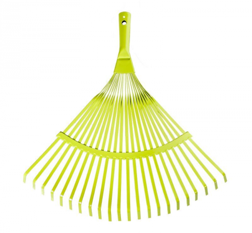 Граблі віялові металеві MyGarden 215-1-22 використовуються для згрібання листя, трави та дрібних гілок. Ширина граблів складає 390 мм. Граблі MyGarden 215-1-22 мають 22 зубці, що виготовлені з якісної пружинної сталі та дозволяють їм досить щільно прилягати навіть до нерівних поверхонь, чим забезпечується якісний результат роботи. Пропонується у вигляді насадки, без держака. Держак можна підібрати окремо, відповідно до зросту користувача.