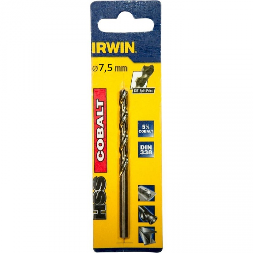 Свердло по металу IRWIN 10502560 призначене для свердління нержавіючої сталі. Дане свердло виготовлено зі швидкорізальної інструментальної сталі HSS з додаванням 5% кобальту. Завдяки такому складу підвищується термостійкість свердла і продовжується термін його служби. Ріжуча частина зроблена з підточкою поперечної кромки і кутом заточування 135°, що забезпечує відмінне центрування і зменшує навантаження під час свердліня. Свердло по металу HSS COBALT виробляє точне свердління і має відмінний відвід стружки завдяки відшліфованій канавці. Циліндричний хвостовик надійно кріпиться в патроні.