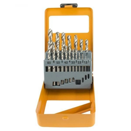 Набір свердл по металу 1,0-10,0мм з кутом заточування при вершині 118º. Ріжучі кромки забезпечують швидке свердління та точну обробку матеріалу. Шліфована спіраль призначена для швидкого виведення стружки.