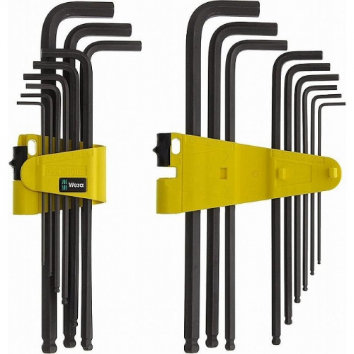 Г-подібні ключі BlackLaser950/9 Hex-Plus Imperial 1 WERA 05022171001 під внутрішній шестигранник. Ключі упаковані в практичному затиску із зносостійкого матеріалу для тривалого надійного зберігання і одночасно простого вилучення ключів. Г-подібний ключ Hex-Plus збільшує площу контакту з головкою гвинта. За рахунок цього до мінімуму знижується концентрація напруги в профілі, що практично виключає вірогідність руйнування головки гвинта. Кульковий накінечник на довгій стороні дозволяє впевнено працювати навіть в складних умовах монтажу. Обробка поверхні за технологією Black Laser забезпечує відмінний захист від корозії, а також довгий термін служби інструменту. Нанесене лазером, а тому і зносостойке маркування розміру допомагає швидко відшукати потрібний Вам ключ.