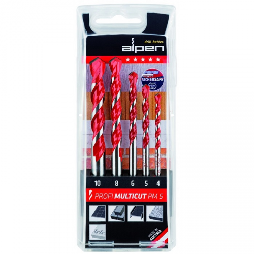 Набір свердл мультиматеріал ALPEN Profi Multicut 100705100 має оптимізовану геометрію свердла і спеціальну заточку, що скорочує час свердління приблизно на третину. Стійкість свердла збільшилася в 3 рази завдяки застосуванню високоякісної швидкорізальної сталі та спеціальній термічній обробці. Спеціальний багатоступеневий метод гарту розроблений і використовується виключно фірмою ALPEN.
