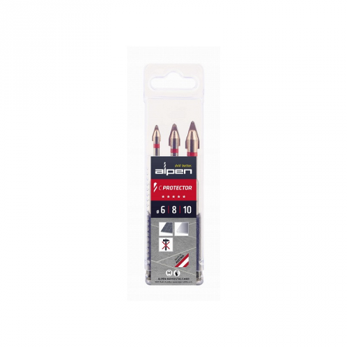 Свердла в наборі для керамограніту ALPEN C PROTECTOR (303003100) призначені для свердління ідеальних отворів в найтвердішій керамогранитній плитці, а також скла та порцеляни.
