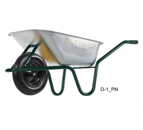 Тачка будівельна ALTRAD D-1 (А-11) 100z PN має оцинкований пресований кузов з укріпленим краєм, який зроблений з високоякісної сталі. Об'єм кузова вміщує: 100 л рідких сумішей, до 180 л сипучих. Максимальна вантажопідйомність складає 180 кг. Каркас виробу виконаний з цільної металевої труби. Ручки тачки довгі і широко розставлені, щоб між ними легко поміщався корпус людини. Це виключає навантаження на хребет і забезпечує найбільшу маневреність в управлінні пристроєм.