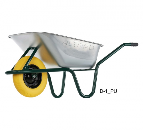 Тачка будівельна ALTRAD D-1/1006gz100pn підійдуть для транспортування вантажу і матеріалу різного роду (грунт, розчин бетон, пісок, сміття, і т.д.). Легкість, зручність і міцність конструкції тачки забезпечить приємну роботу в будь-яких умовах. Посилена рама дасть Вам гарантію, що тачка прослужить не малий термін. Є варіанти з пневматичними колесами (PN), поліуретановими колесами (PU) і колесами з литої гуми (SR). Тачки ALTRAD можна використовувати в саду, на дачі, на будівельному майданчику, тощо