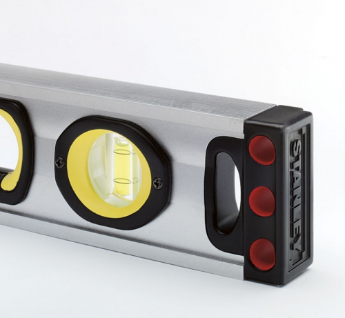 Рівень STANLEY 1-43-525 - найбільш важкий рівень в своєму класі, що надає йому найвищу міцність. Посилений трубчастий алюмінієвий корпус для забезпечення високої міцності і жорсткості. Дві фрезеровані з високою точністю робочі поверхні. Поглинаючі енергію удару заглушки на торцях корпусу призначені для забезпечення збереження точності рівня при його випадкових падіннях або ударах. Три капсули рівня, добре помітні, з легким зчитуванням показань, одна горизонтальна і дві вертикальні. Центральна капсула рівня ″dual view″ збільшеного розміру для легкого зчитування показань. Два отвори в корпусі рівня з гумовою вставкою для зручного захвату. Магнітна підстава для більшої зручності під час виконання роботи. Похибка в вимірюваннях може складати +/-0,5 мм/м.
