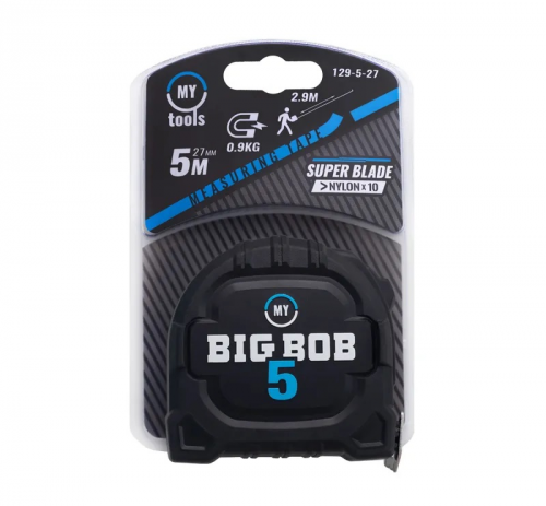 Рулетка BIG BOB MyTools 129-5-27 для вимірювання довжини та ширини об'єктів. Зручний інструмент для використання у побуті та будівництві. Рулетка проста та легка у використанні, тому нею може користуватися кожен охочий. Не вимагає додаткових знань чи досвіду. Дана модель рулетки 5мх27мм допоможе вимірювати об'єкти завдовжки до 5м.
