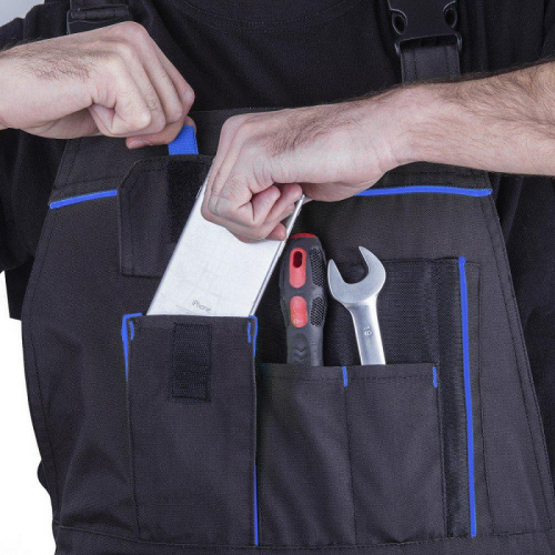 - 10 об'ємних кишень: з них 6 на липучці, 1 на блискавці - для надійного зберігання і швидкого доступу до смартфону, документів, кріплення, інструменту;