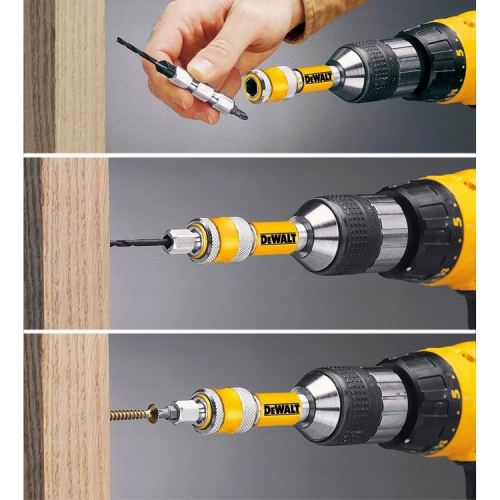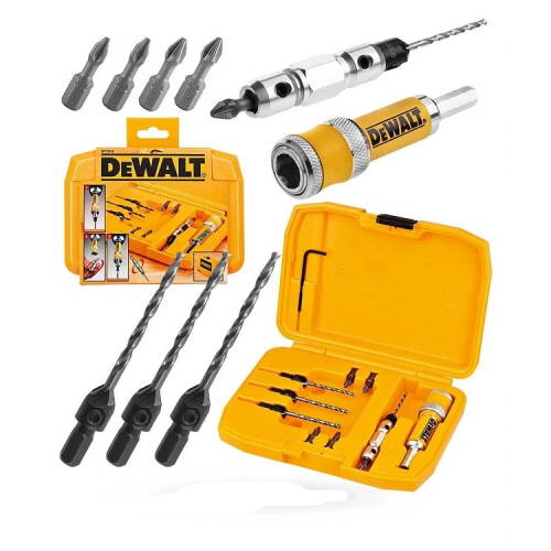 Набір пілотних свердел з зенкерами "FLIP&DRIVE" DeWALT DT7612 призначений для одночасного свердління настановних отворів і зенковки, а також для закручування шурупів. З’єднувальний вузол зі стопорним кільцем дозволяє легко міняти свердло на насадку і назад однією рукою. Хвостовик 8 мм збільшує термін служби. Набір відмінно підійде для свердління отворів у твердих та м’яих породах дерева, багатошарових плитах і МДФ. Використовують набір свердел DeWALT (DT7612) для виготовлення та складання меблів, робіт з перепланування та монтажу кухонних шаф, вбудованих шаф, а також при різних типах столярних робіт.