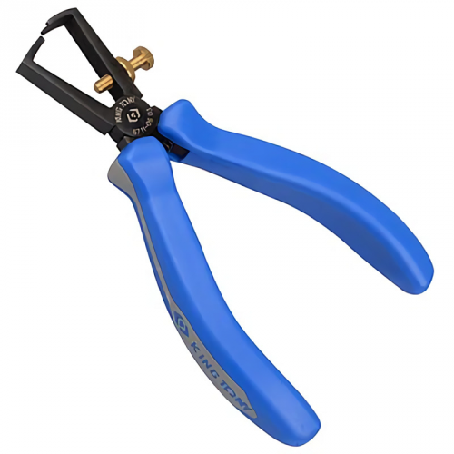Пасатижі для зачистки ізоляції 0,8-6мм KING TONY 6711-06 спроектовані спеціально для зняття ізоляції з країв дротів або оброблення кабелю під час електромонтажних робіт. Пасатижі прості у використанні, нічим не складніше для засвоєння ніж кусачки, за принципом роботи схожий з бокорізами, однак куди більш практичний і зручний, бо вузько-спеціалізований і призначений саме для швидкої і якісної, навіть естетичної, ручної зачистки від ізоляції окремих жил. Наявність в конструкції регулювального гвинта, який фіксує леза на необхідній відстані, для більш зручного зняття ізоляції з дротів однакового діаметру. Адже все геніальне простіше простого! Знімач ізоляції від "KING TONY" дозволяє зачистити кабель діаметром до 6 міліметрів. Інструмент оснащений пружиною для повернення і фіксації клешнів в початкове положення. Пасатижі для зачистки ізоляції оснащені ергономічними руків'ями з двокомпонентного матеріалу, зовсім не ковзає і дуже зручно лежить у руці. Клас ізоляції рукоятки до 1000 В. Важить цей інструмент 191 грам, при довжині всього лише 155 мм. Клешні ливарно виготовлені з нержавіючої легованої сталі. Руків'я синього кольору з фірмовим логотипом виробника.