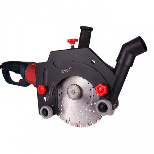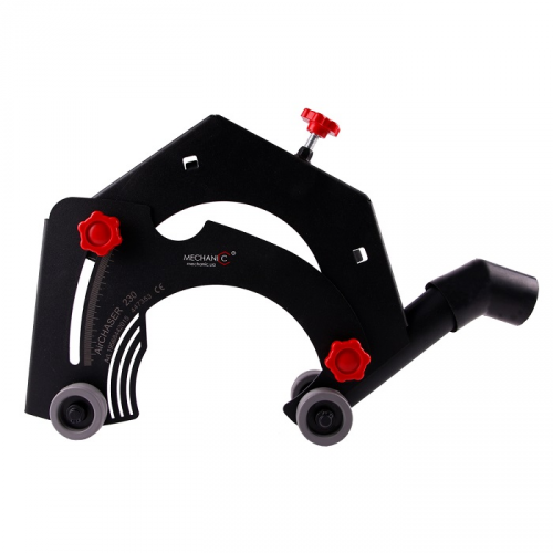 Штроборіз накладний на КШМ AirCHASER 230мм DISTAR 19568442015 призначений для прорізання штроб під електропроводку, водопостачання, каналізацію в бетонних цегляних та інших поверхнях. Універсальна система кріплення дозволяє легко встановити насадку на кутошліфувальну машину будь-якої моделі і будь-якого виробника. Насадка-штроборіз AirCHASER 230мм має регульовану глибину різання. Пластикові колеса забезпечують плавність переміщення по поверхні. Аеродінамічна система і щітковий ущільнювач ефективно відбирають пил із зони різання. Відкрита конструкція забезпечує повний огляд зони різання, охолодження диска. Мала вага в порівнянні з існуючими штроборізами істотно полегшує роботу. Міцний метал і ребра жорсткості роблять конструкцію жорсткою і надійною. Гумовий патрубок дозволяє підключати пилососи різних виробників.