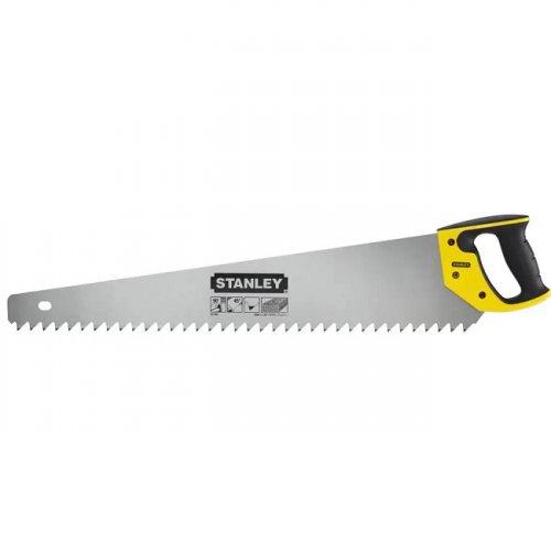 Ножівка по пінобетону STANLEY 1-15-441 з великими зубами розміром 1,2 tpi (1,2 зуба/дюйм). Призначена для пиляння чарункуватого бетону (пінобетону) і м’якого каменю. Міцна рукоятка з АБС-пластика виконана методом інжекційного лиття, має форму, що дозволяє відкладати кути 45° і 90°. Рукоятка надійно закріплена на полотні двома гвинтами. Загартовані зуби не вимагають заточування. Ножівка по пінобетону STANLEY 1-15-441 має довжину 650 мм.