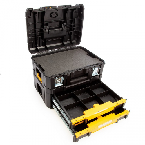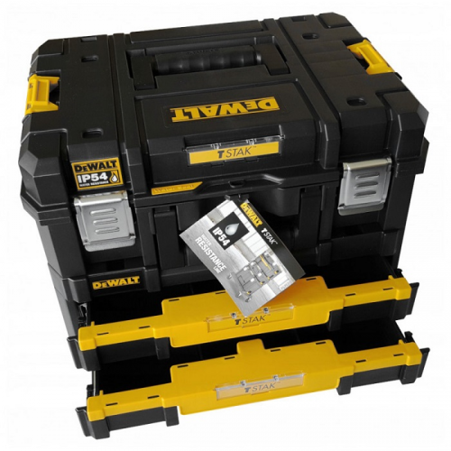 Ящик TSTAK 2.0 з висувними секціями DeWALT DWST83395-1 з системою затискачів Mix&Match дозволяє створювати різні комбінації з ящиків. Ящик TSTAK 2.0 COMBO складається з 2-х ящиків скріплених між собою системою затискачів Mix&Match: верхній ящик зроблений зі вставкою зі спіненого матеріалу, нижній з 2-ма висувними секціями для дрібниць. Інструментальний ящик зі вставкою з попередньо надрізаного спіненого матеріалу для оптимального розміщення інструменту. Ящик системи TSTAK дає можливість нарощування: всі ящики можуть бути встановлені один зверху іншого. Міцні бічні засувки створюють надійну фіксацію. Двокомпонентна ручка зверху кожного блоку гарантує легкий і зручний підйом і перенесення. Інноваційний дизайн: міцний і жорсткий. Додані ущільнювальні канали, завдяки яким новий ящик отримав вологозахисні властивості за стандартом IP54. Всередині розташовано місце для кріплення чіпа Tool Connect. Організатор в кришці оснащений 7 відділеннями. Корисний об’єм: 21,6 л. Максимальне навантаження складає 30 кг. Габарити ящика: висота - 340мм, довжина - 440мм, ширина - 330мм.