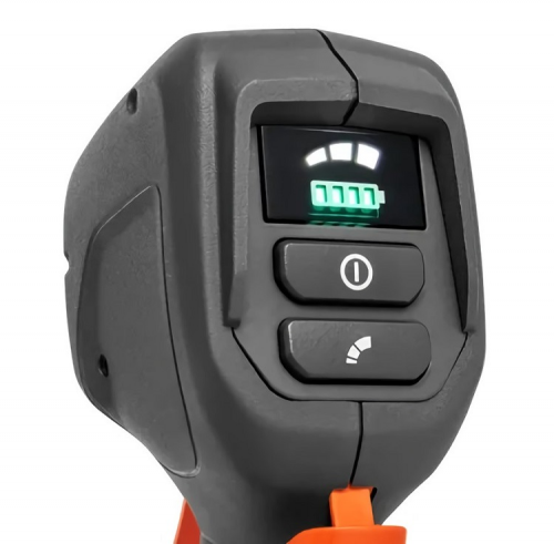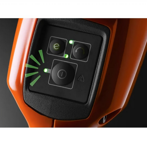 Акумуляторні продукти Husqvarna оснащені кнопкою увімкнення/вимкнення. Для підвищення безпеки продукт ніколи не можна запускати, не звільнивши певний компонент безпеки перед натисканням на курок. Запатентований індикатор безпеки сповістить блимаючим світлодіодним індикатором, якщо оператор спробує запустити виріб, не дотримуючись розпоряджень безпеки.