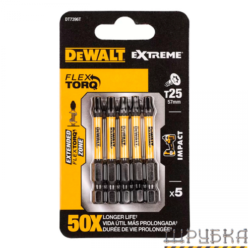 Набір біт DeWALT DT7396T з модифікованою головкою Torx T25. Набір виконаний з термообробленої сталі для твердості і довговічності.